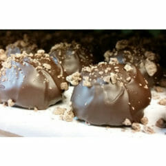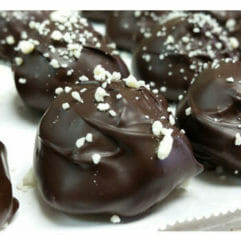 Earl Grey Tea leaves are infused into the cream used in the 58% Dark Chocolate Ganache center, then dipped into Milk Chocolate and topped with a dark chocolate stripe. To balance the subtleness of the Earl Grey Tea we dipped the square in Milk Chocolate. We use tea from the Full Leaf Tea Company.